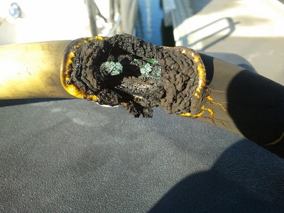 5、電纜頭燃燒:由于電纜頭表面受潮積污,電纜頭瓷套管破裂及引出線相間距離過小,導致閃絡著火,引起電纜頭表層絕緣和引出線絕緣燃燒。