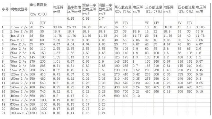 式中:I——導(dǎo)線中通過的最大電流(A) L——導(dǎo)線的長度(M) U`——充許的電源降(V) S——導(dǎo)線的截面積(MM2)